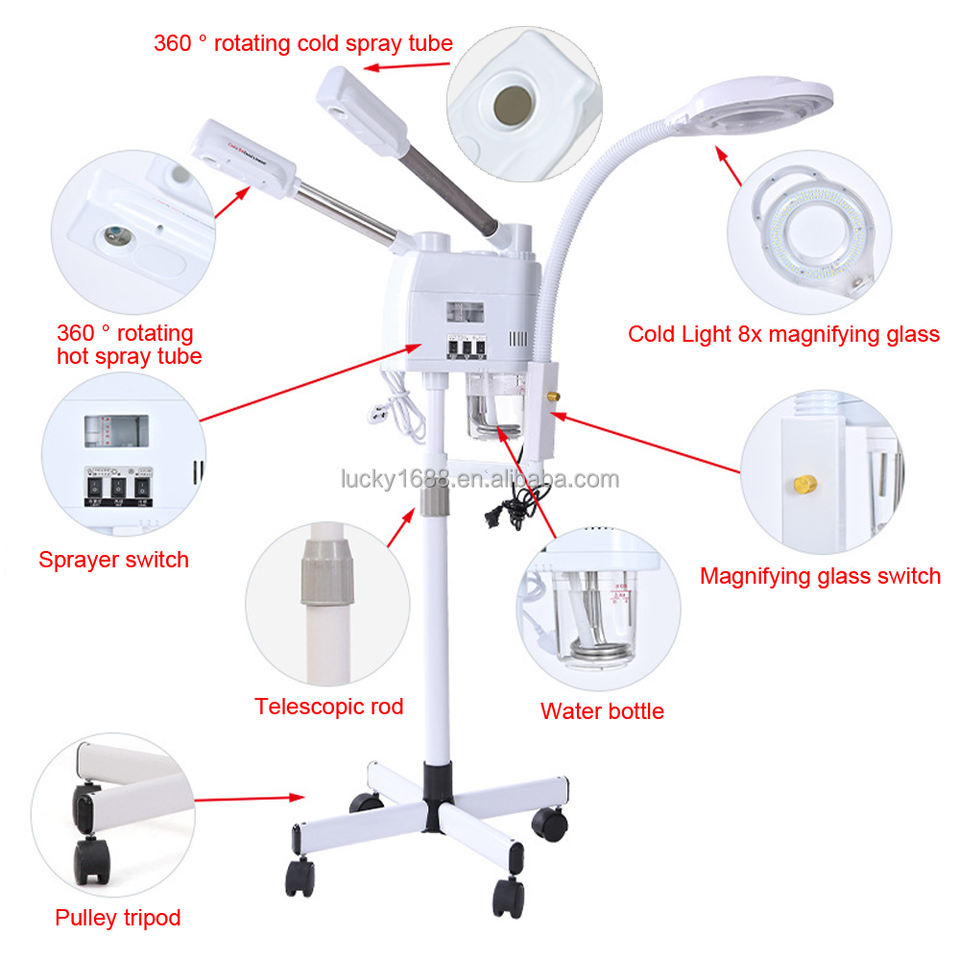 Lampe loupe professionnelle ajustable 8x pour analyse de peau, loupe sur pied avec vapeur facial, vente en gros