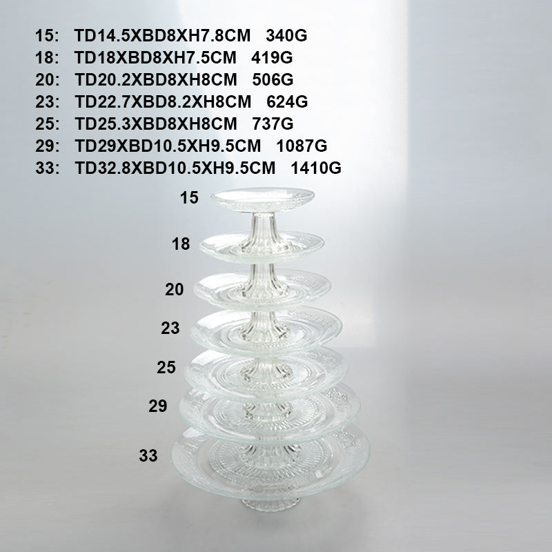 Vente en gros d'usine de porte-gâteaux en verre bon marché Assiette en verre Ensemble d'assiettes de présentation sur pied Support à gâteau de 6, 7, 8, 9 et 10 pouces pour mariage et fête à la maison