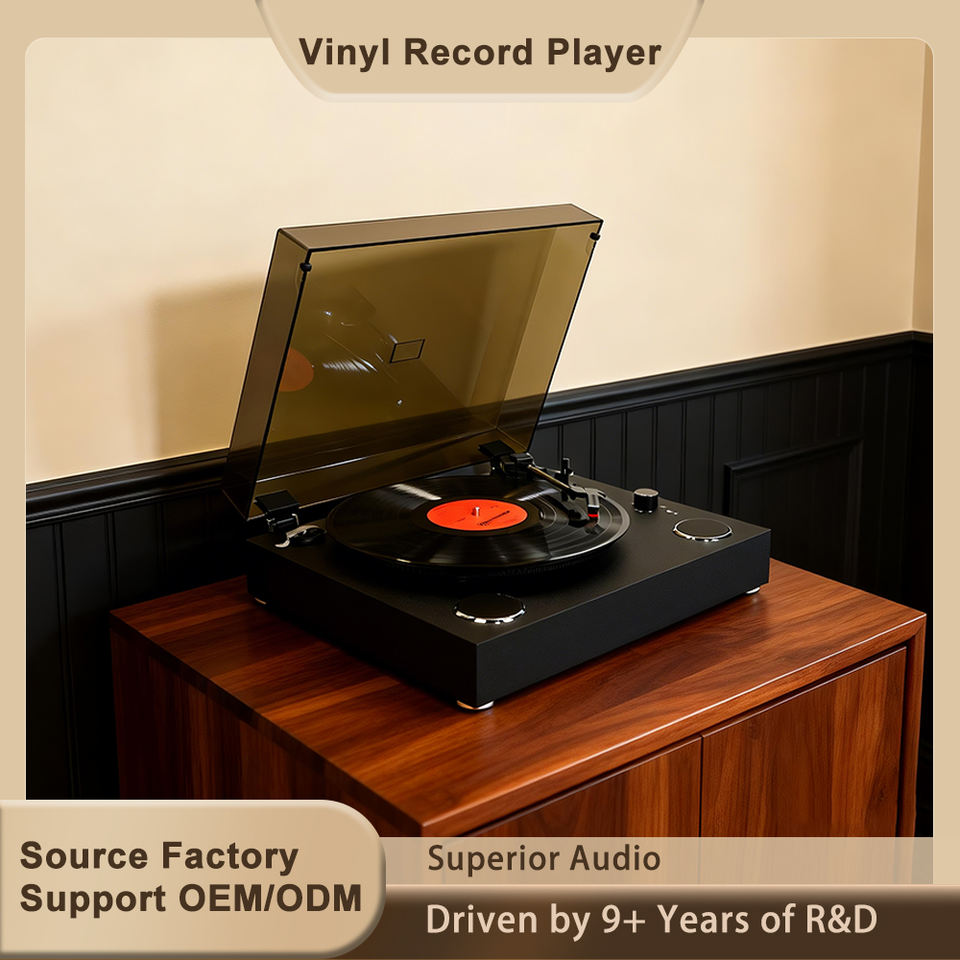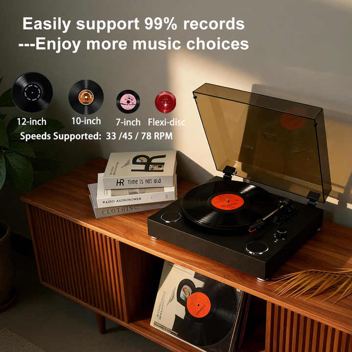 Grossiste OEM ODM Tourne-disque Vintage 33 45 78 RPM Plateau Large HiFi Stéréo avec Enceintes