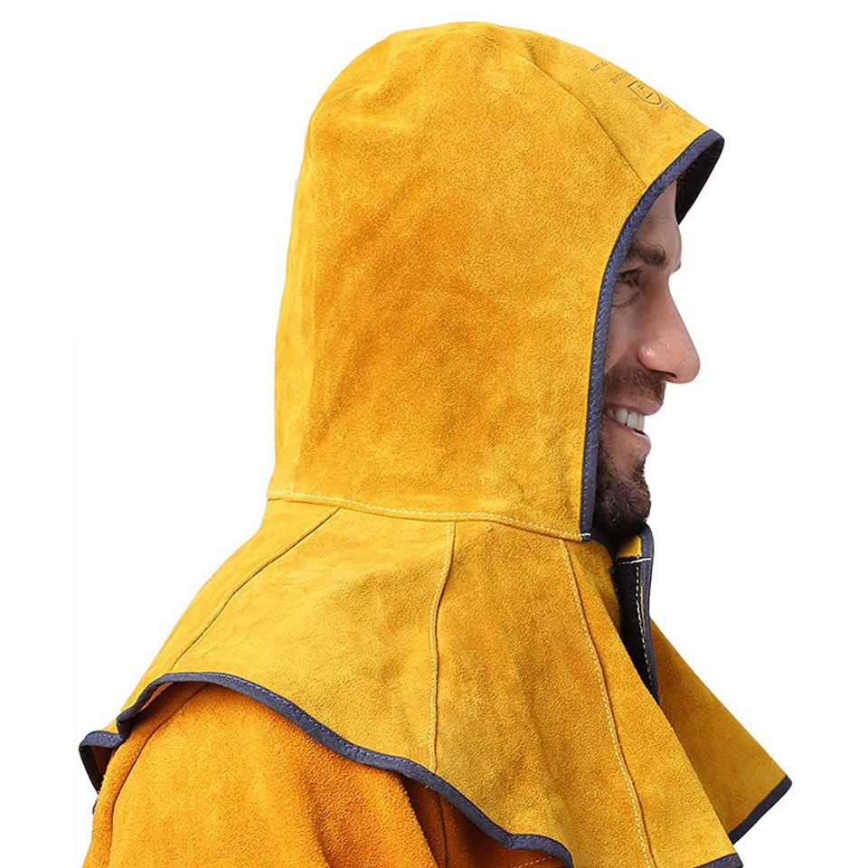 Vente en gros, personnalisable en usine, cagoule de soudeur en cuir croûte de qualité supérieure, respirante, ignifuge, imperméable et résistante au feu