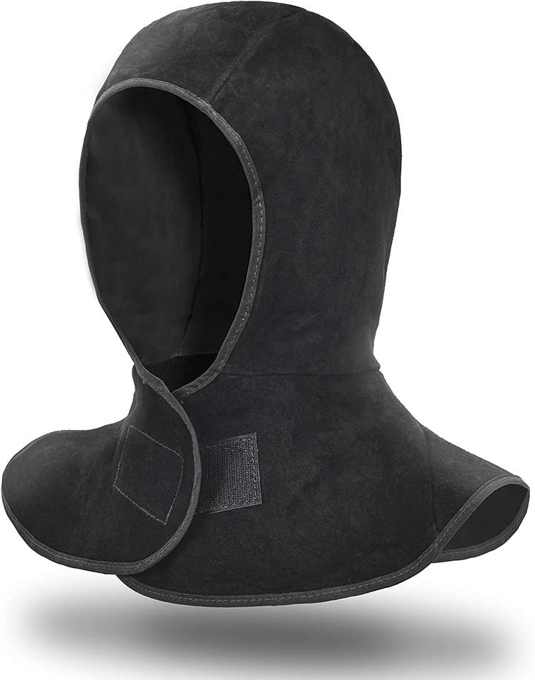 Vente en gros, personnalisable en usine, cagoule de soudeur en cuir croûte de qualité supérieure, respirante, ignifuge, imperméable et résistante au feu