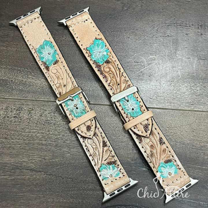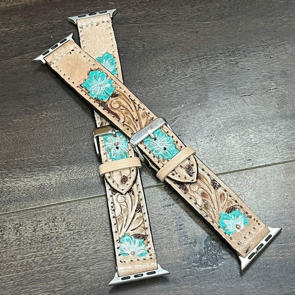 Bracelet de montre intelligente en cuir véritable, travaillé à la main