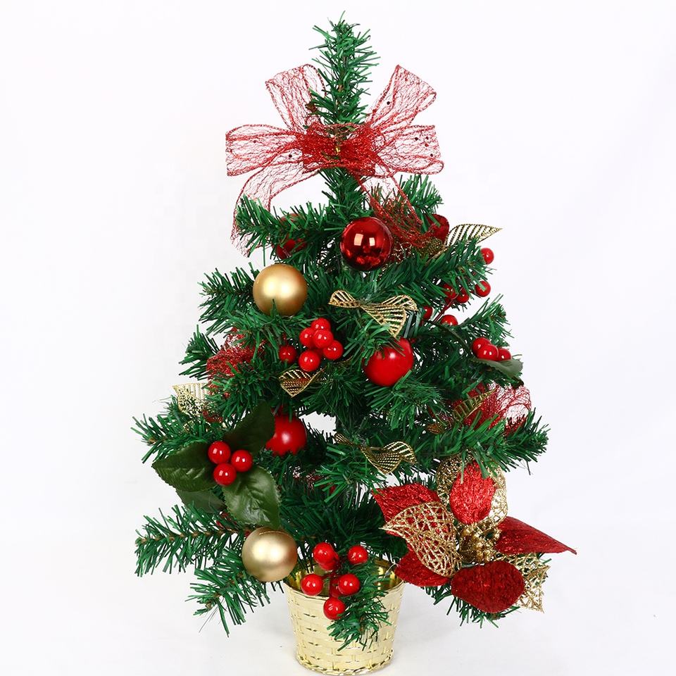 Vente en gros directe d'usine Mini arbre de Noël hybride sapin/pin/eucalyptus avec aiguilles en PVC et petit ornement