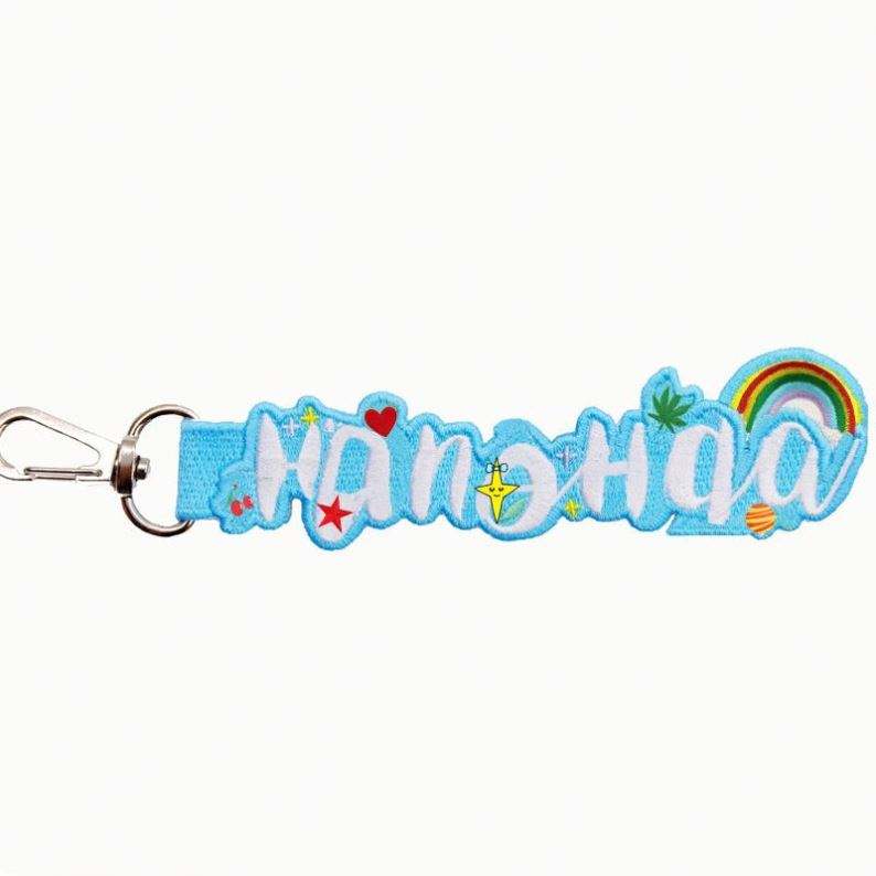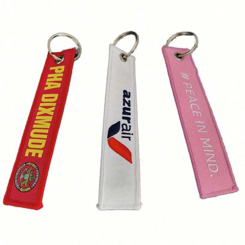 Vente en gros directe d'usine de porte-clés en tissu brodé double face personnalisés