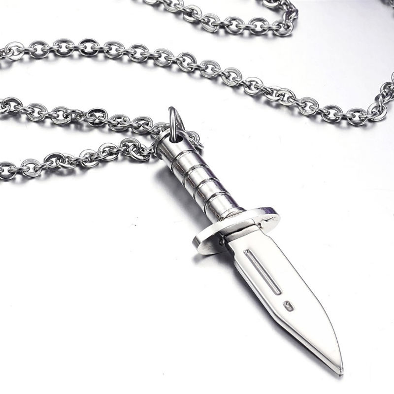 Collier en forme de couteau de poche militaire créatif en acier inoxydable pour hommes, vente en gros d'usine de bijoux