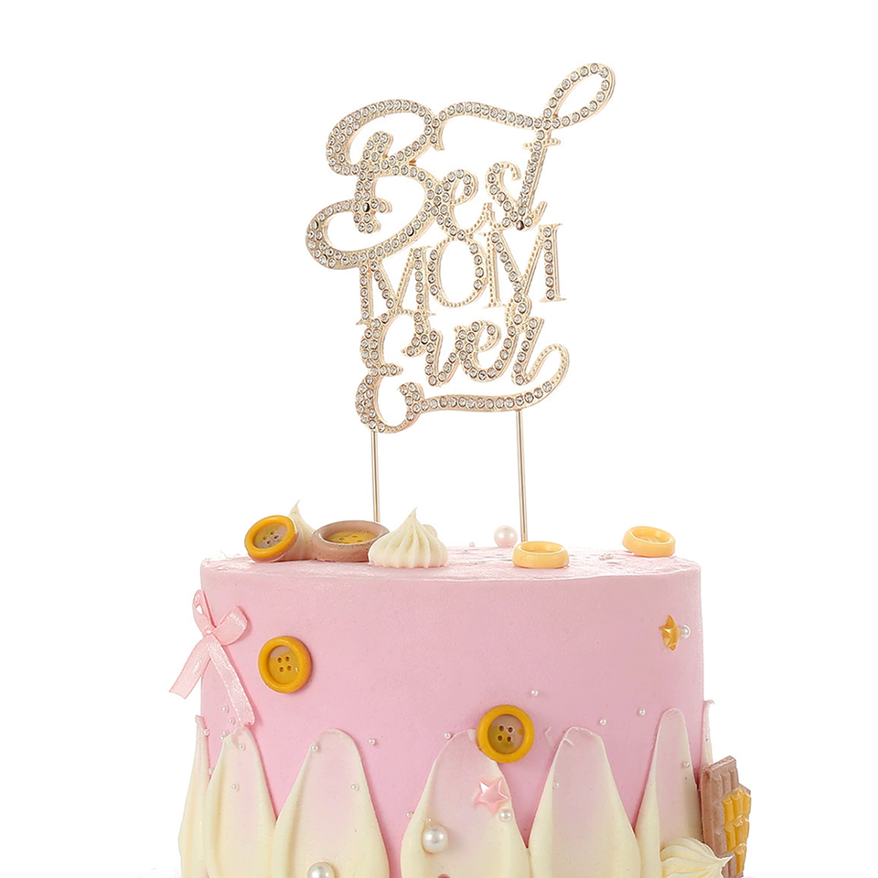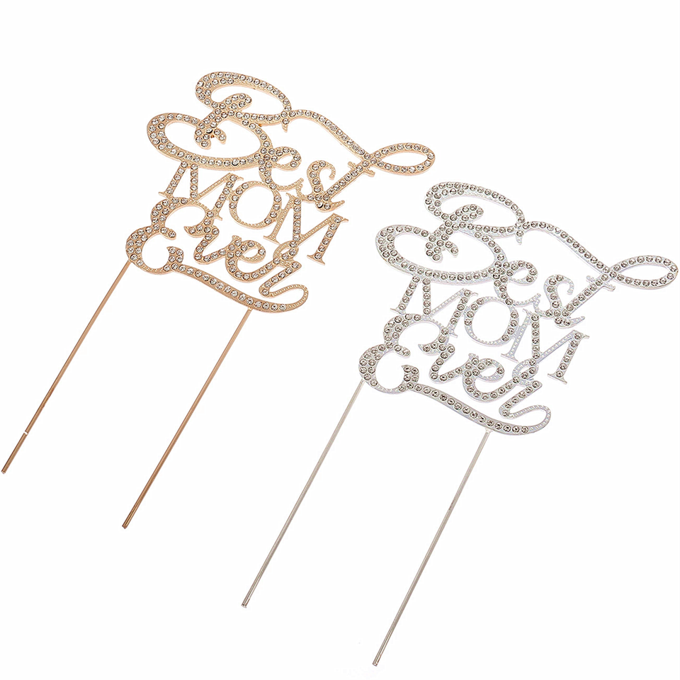 Wholesale Factory Mother's Day Cake Rhinestone Decoration Best Mom Monogrammed Decoration Cake Topper Plaque