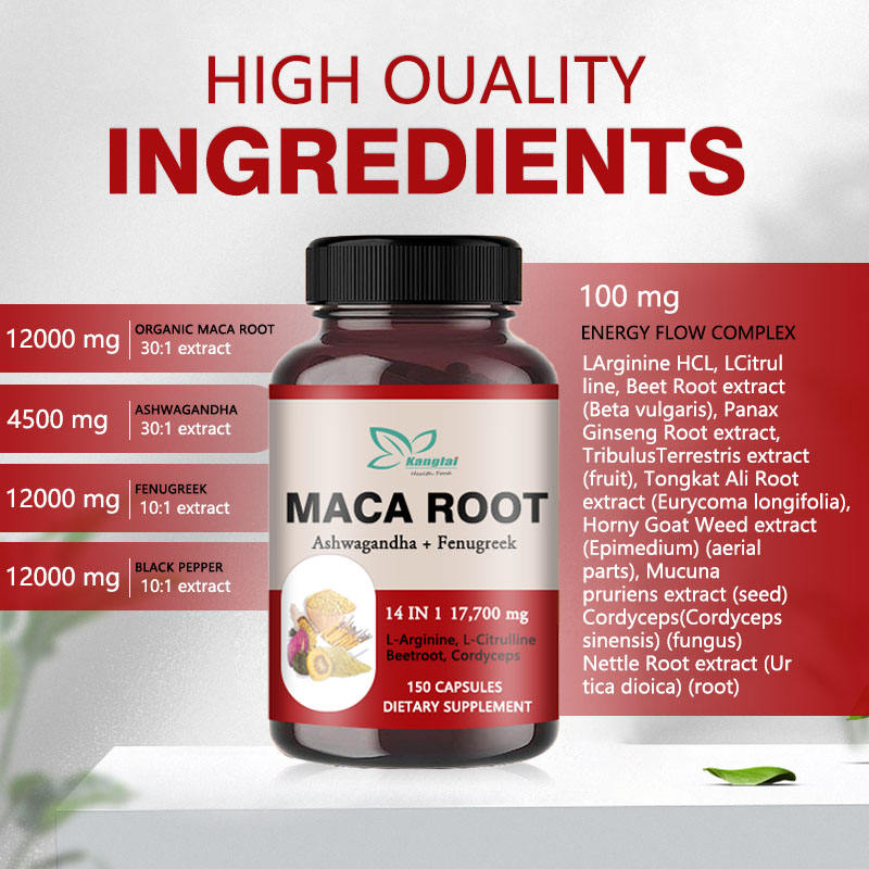 Capsules de racine de maca bio d'usine en gros avec supplément de fenugrec ashwagandha pour stimuler l'endurance et l'énergie Capsules de maca