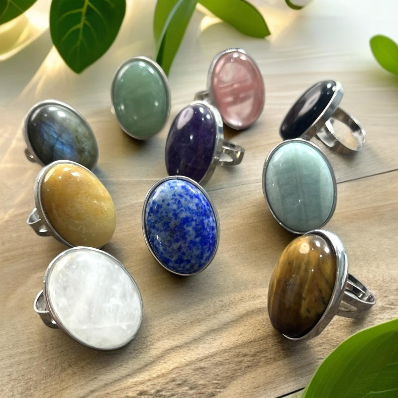 Prix d'usine en gros bague de doigt réglable bague de pierres précieuses naturelles obsidienne noire améthyste opale anneaux pour femmes hommes