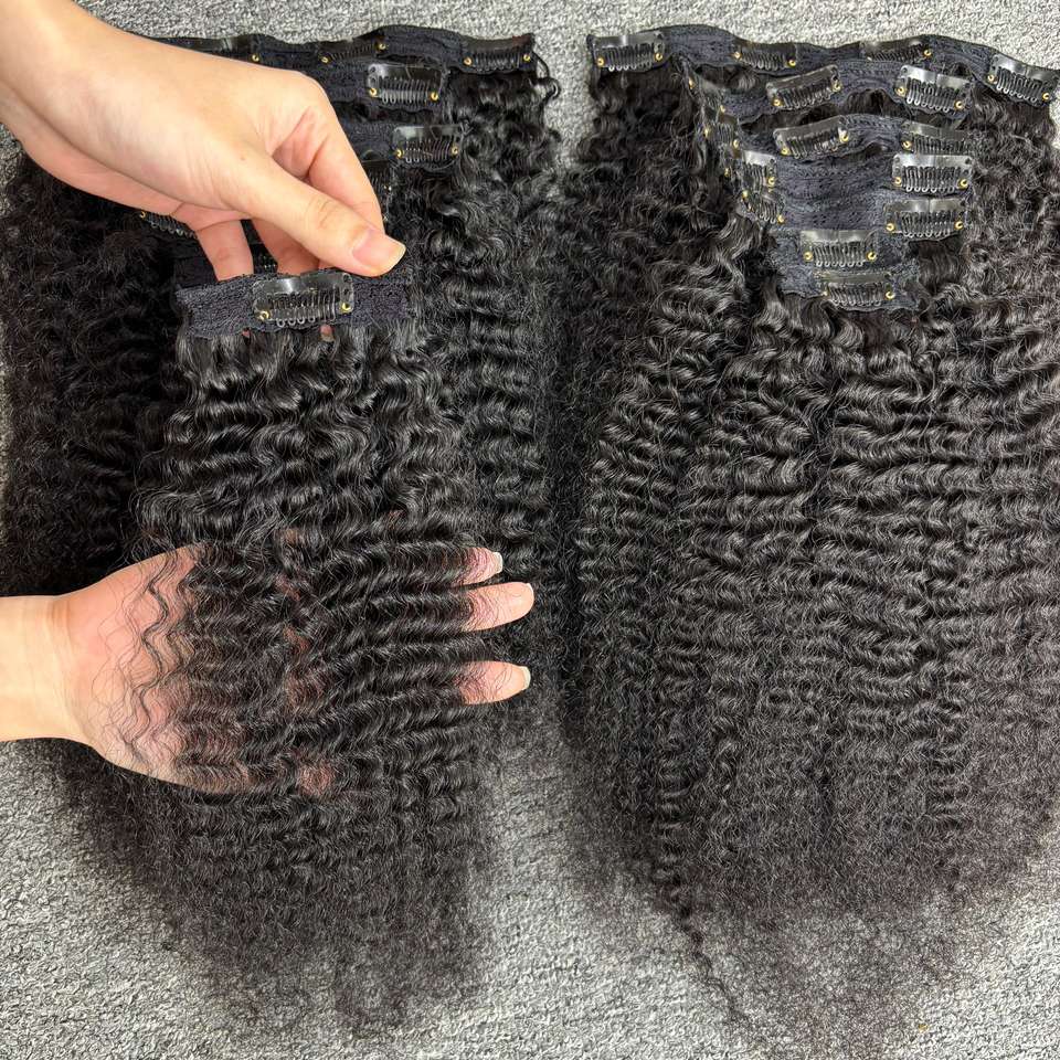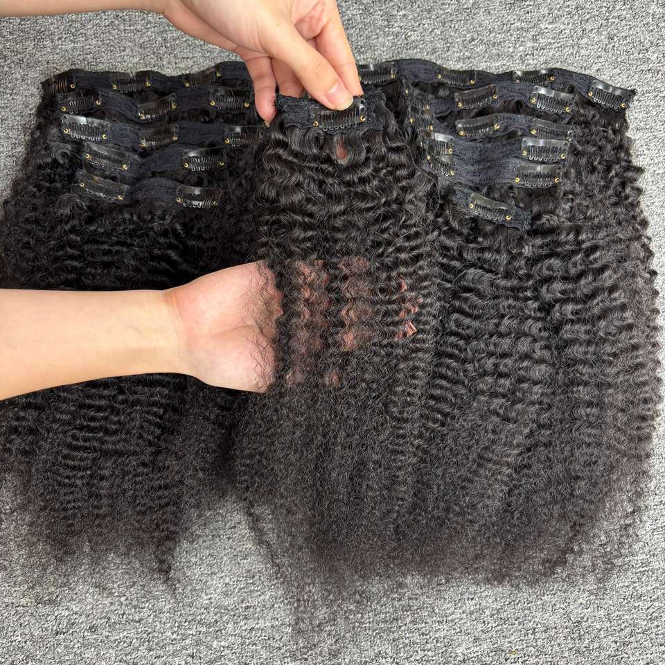 Wholesale Factory Supply 100% Vietnamese Raw Virgin Hair Kinky Curly Clip-in Machine Double Weft Human Hair Extensions 100g