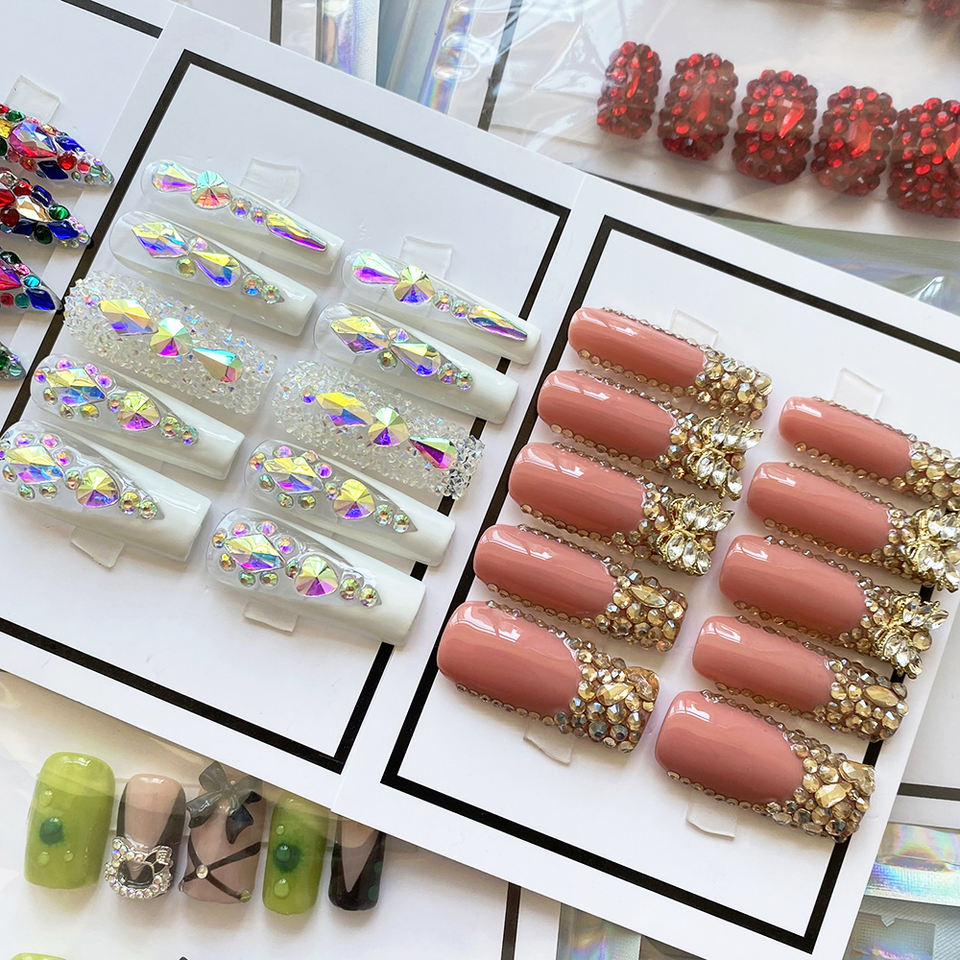 Vente en gros faux ongles faits à la main Y2K réutilisable cercueil Stiletto acrylique faux presse sur les ongles adhésif 10 pièces brillant sculpté manucure