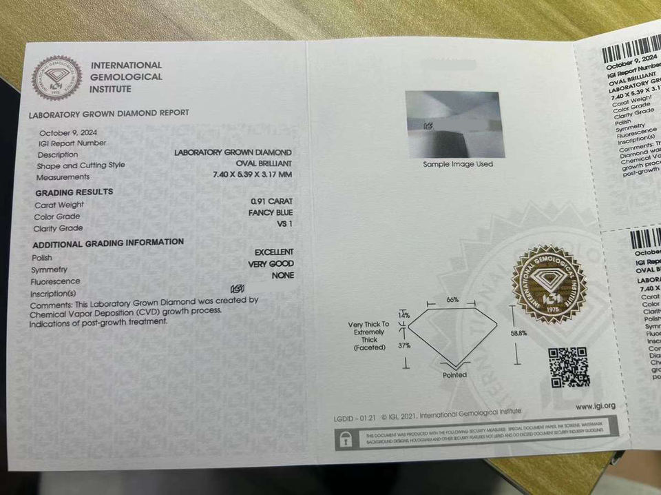 Diamants en vrac fantaisie bleus de 1 carat, forme ovale, certifiés IGI, clarté VVS, cultivés en laboratoire HPHT CVD pour la joaillerie