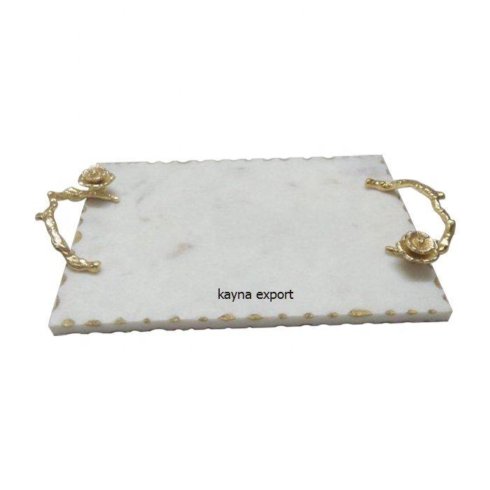 Plateau décoratif en marbre avec poignée en métal plaqué or Plateaux de service artisanaux pour usage domestique Vente en gros