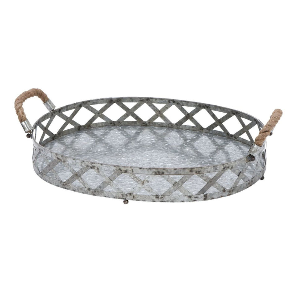 Plateau de service rectangulaire en métal galvanisé style ferme avec poignées en bois pour la décoration intérieure et la cuisine – Excellent prix