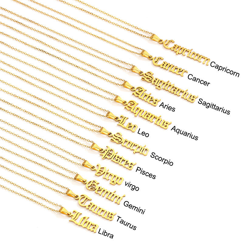 Wholesale 18K Stainless Steel Fashion Jewelry 12 Zodiac Constellation Letter Necklace Gold Horoscope Charm for Women Weddings