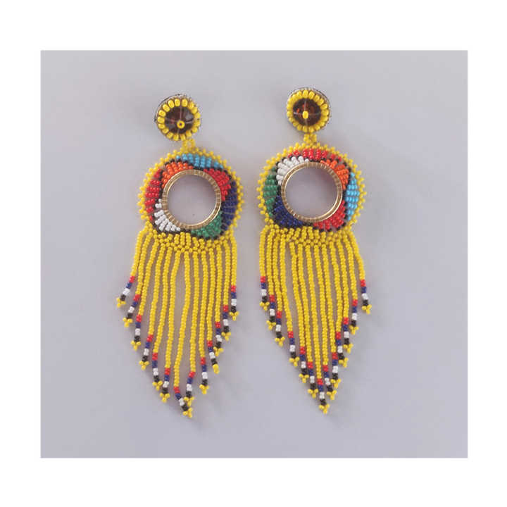Model Number:Yellow Ring Beaded Tassels-Earrings