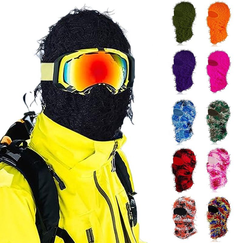 Wholesale Fashion Ski Mask Storm Knitted Distressed Camo Ski Mask Grassy Balaclava Hat