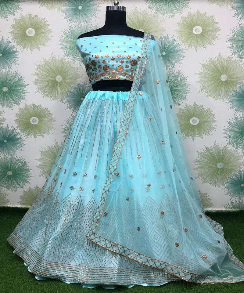Vente en gros de vêtements brodés en georgette indiens pakistanais Lehenga Choli Dupatta pour fête en coton et soie