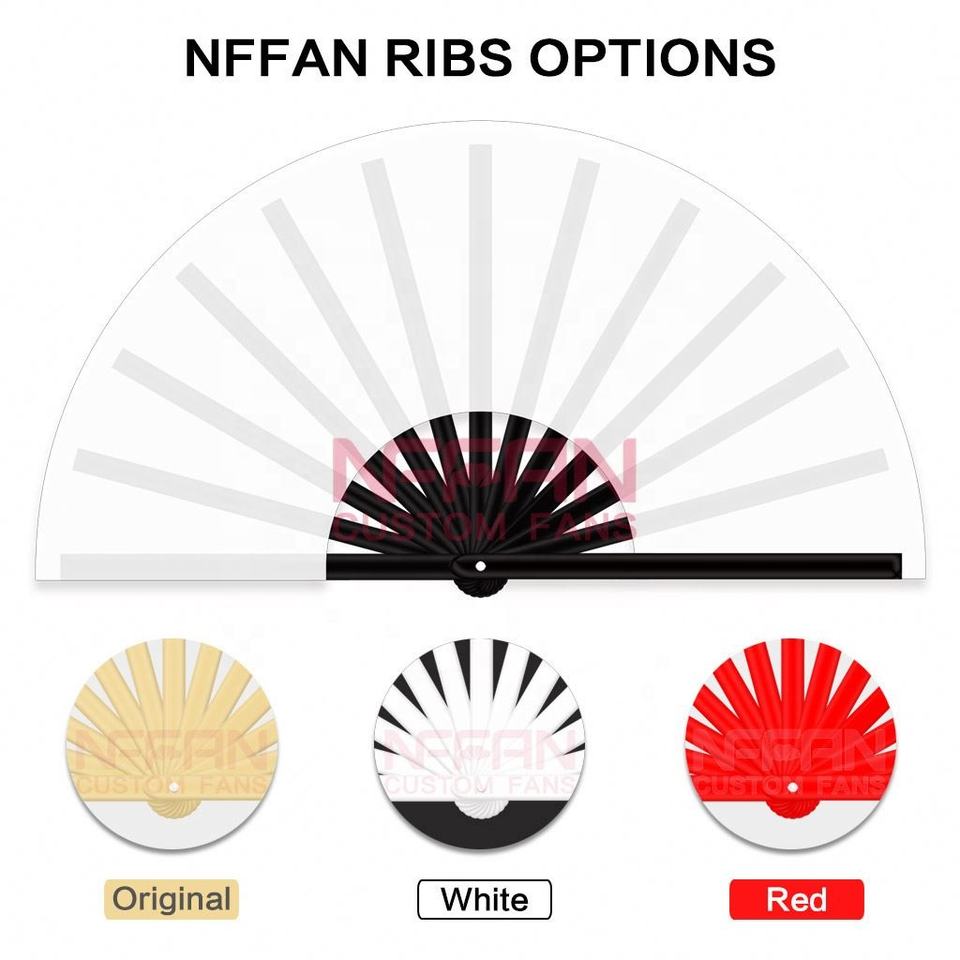 Vente en gros Festivals Rave Ventilateur à main pliable en bambou Grande lueur UV décorative personnalisée pour les soirées