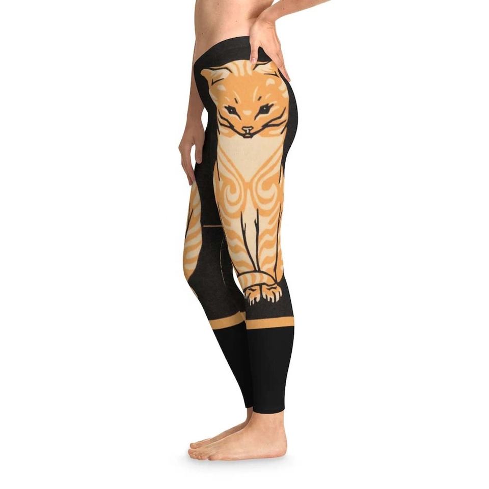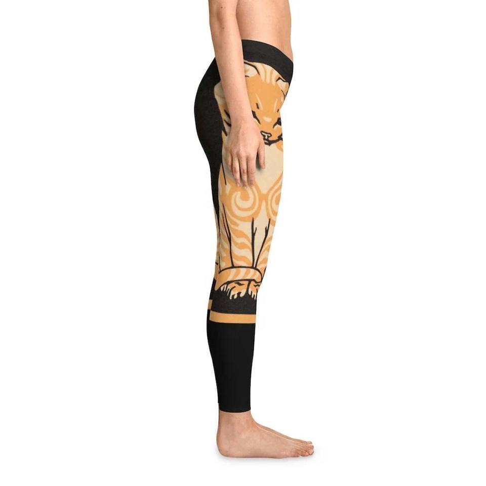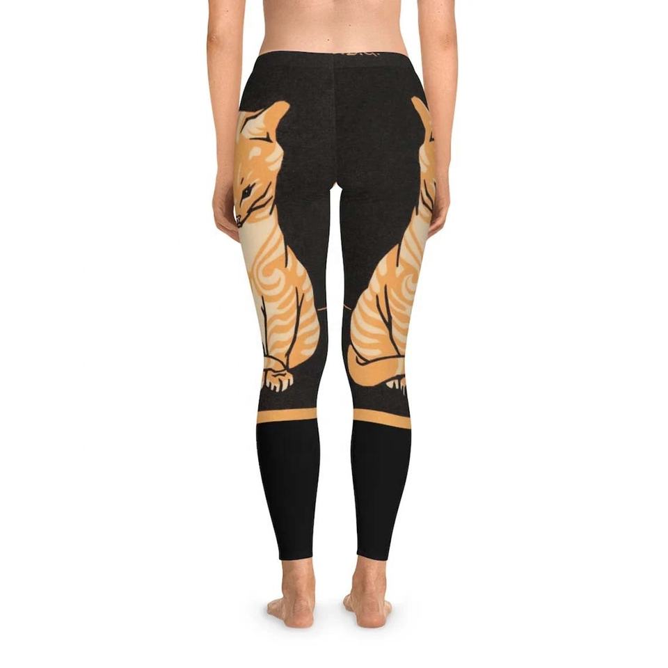 Leggings de yoga respirants et antibactériens extensibles dans quatre directions, avec logo personnalisé imprimé par transfert thermique, motif chat miel, vente en gros