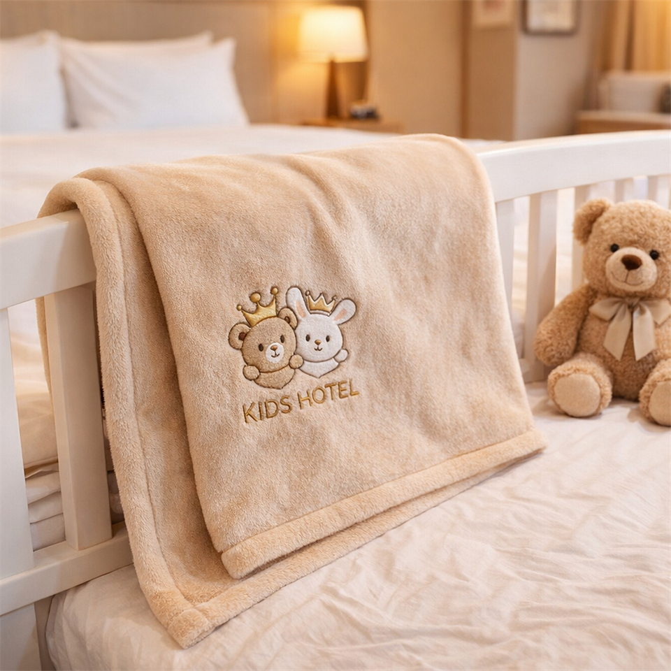 Ventes en gros de couvertures en flanelle pour bébés, logo d'hôtel personnalisé, commande en gros pour les nouveau-nés, les nourrissons, les crèches, l'hôtellerie, les produits de soins pour bébés