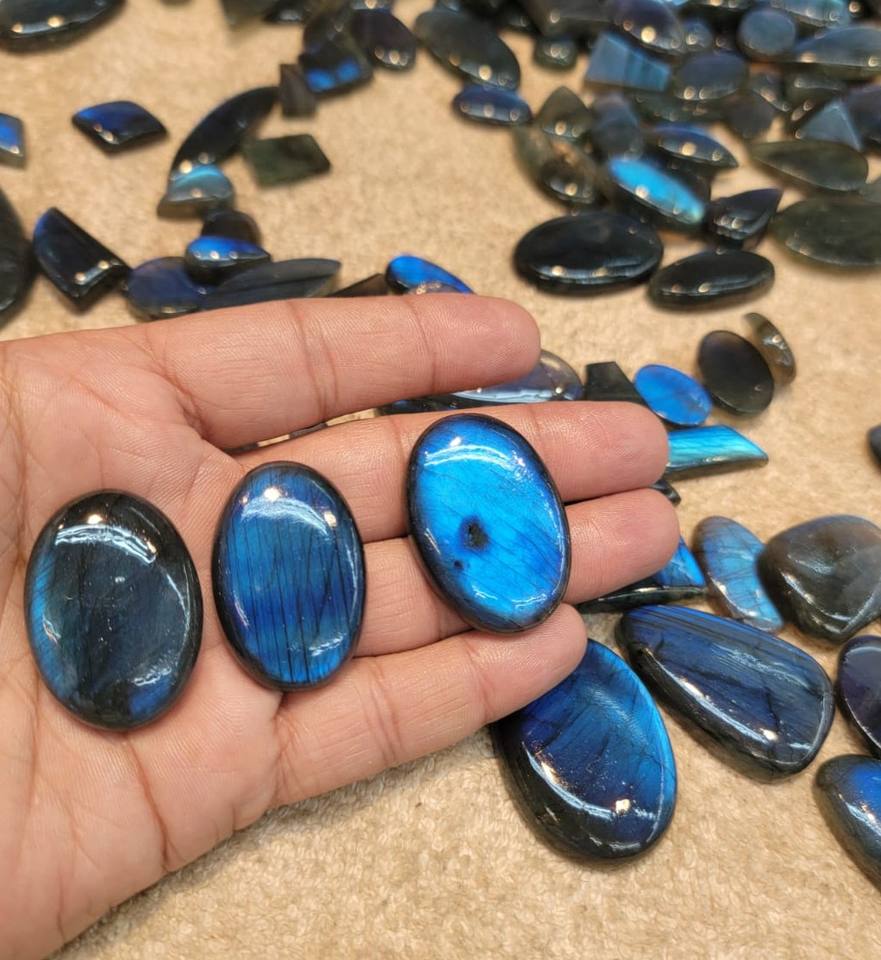 Labradorite cabochon bleu feu en gros, pierre précieuse naturelle arc-en-ciel feu, qualité excellente, lisse, pour la fabrication de bijoux
