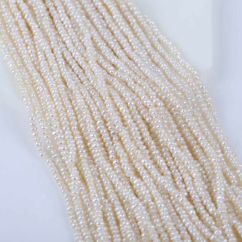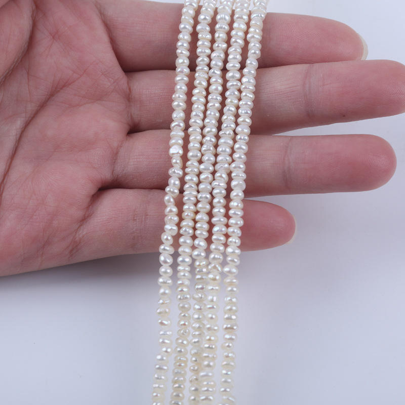 Collier de perles d'eau douce rondes plates en gros, 3-3,5 mm, semi-finies, matériel de fabrication de bijoux faits à la main avec des perles en vrac