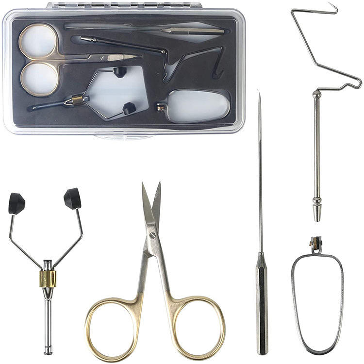 Kit d'outils de fixation pour la pêche à la mouche, bobines, pince à hacher antidérapante, ciseaux, fouet, finisseur, aiguille de doublage, vente en gros