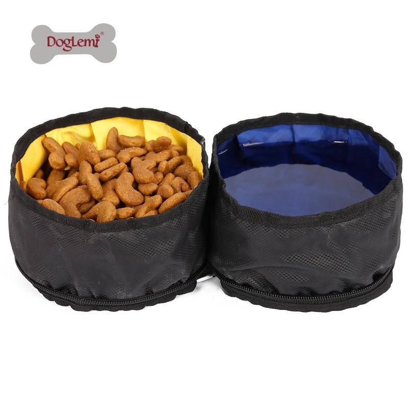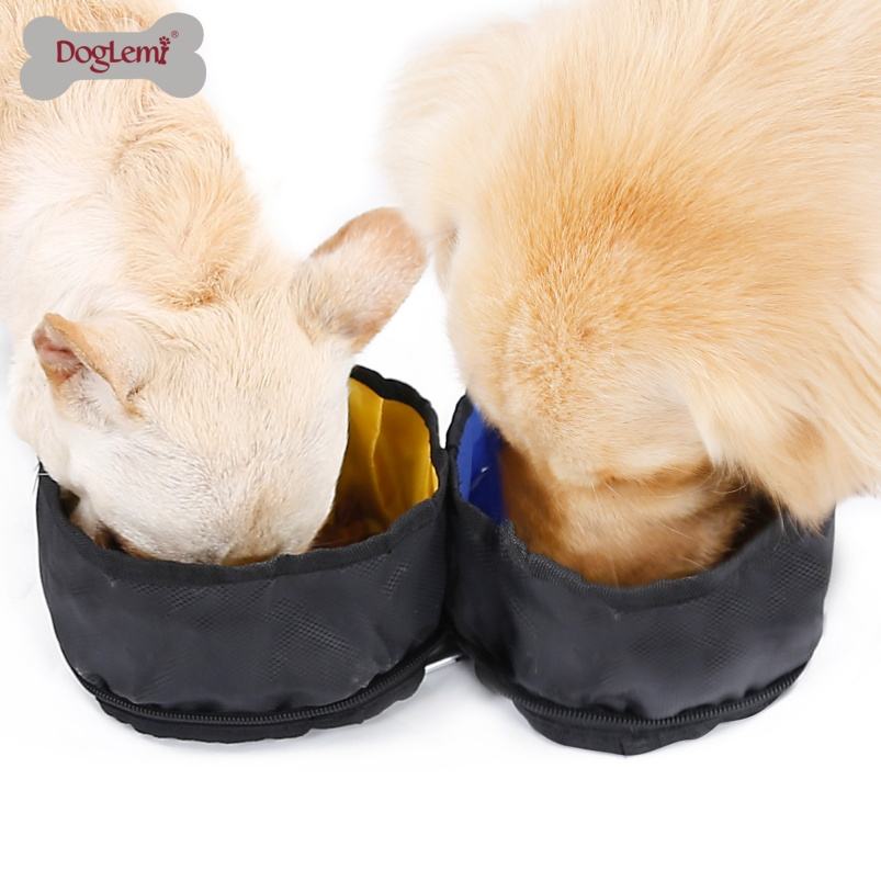Vente en gros Gamelle pliable en nylon pour chien Légère et étanche Double gamelle de voyage Mangeoire pour animaux de compagnie design