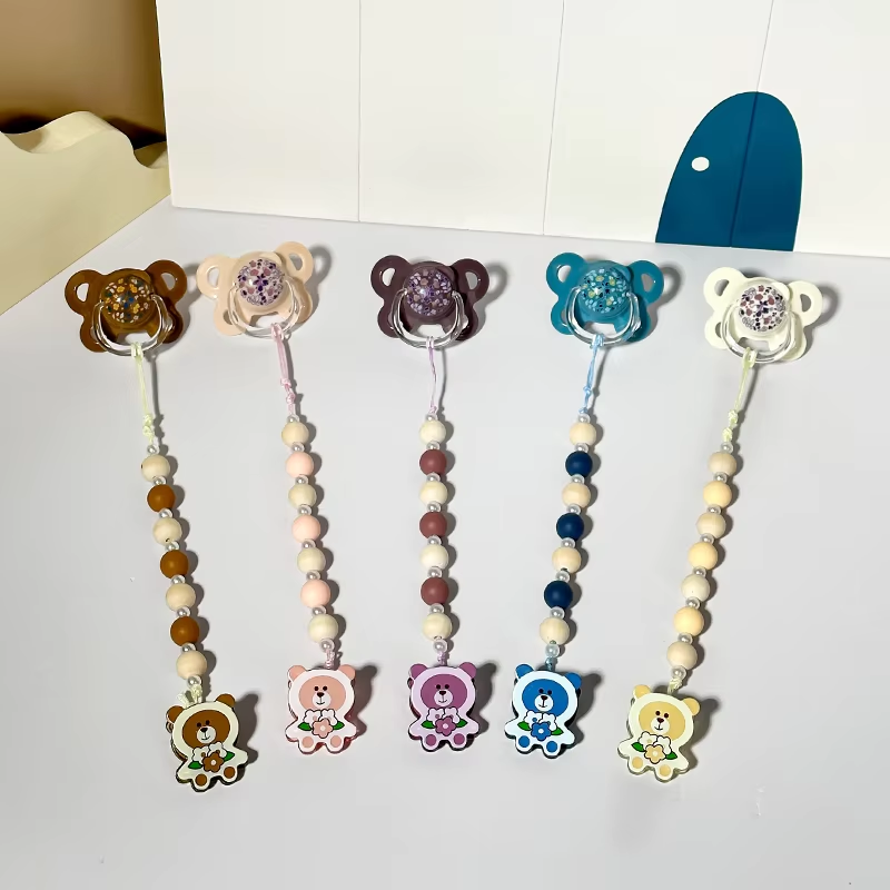 Nom du produit:Sucette papillon en plastique rigide avec perles (tête plate)