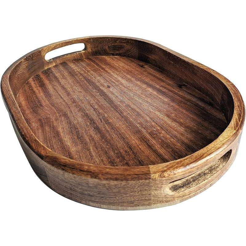 Wholesale Food Grade Home Decor Vintage Oval Shape Acacia Serving Wooden Tray for Food from Indian Exporter
