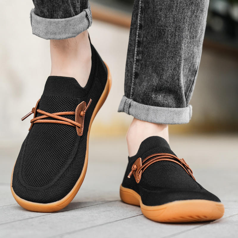 Chaussures de printemps en gros à bout plein, souples, respirantes, légères, avec empeigne en toile maillée, semelle extérieure en caoutchouc et fermeture à bande élastique