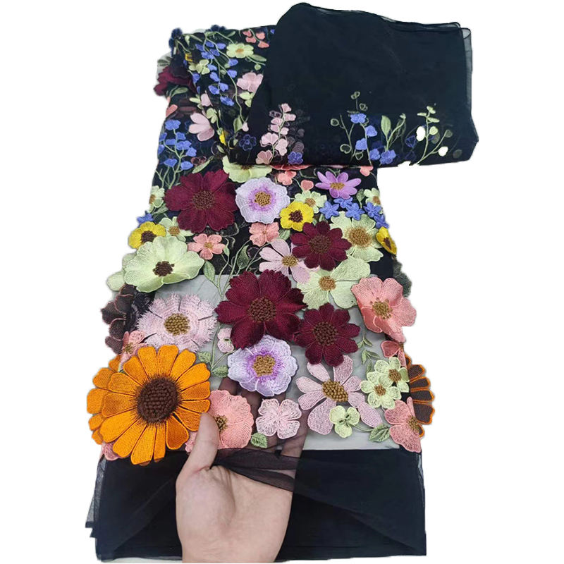 Vente en gros de tissus de broderie française inmy shop robe de dame 3d fleur dentelle maille tulle tissu pour mariage soirée robe de mariée
