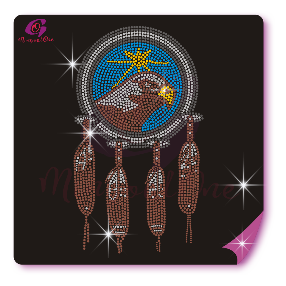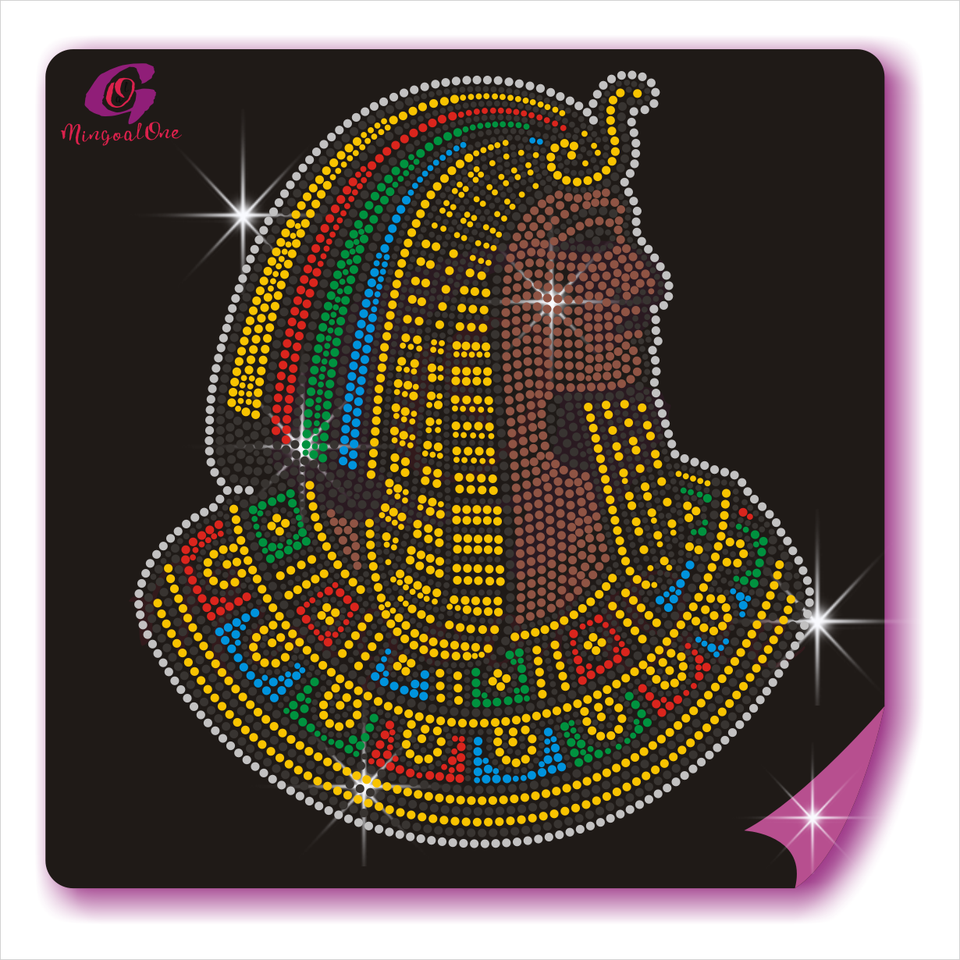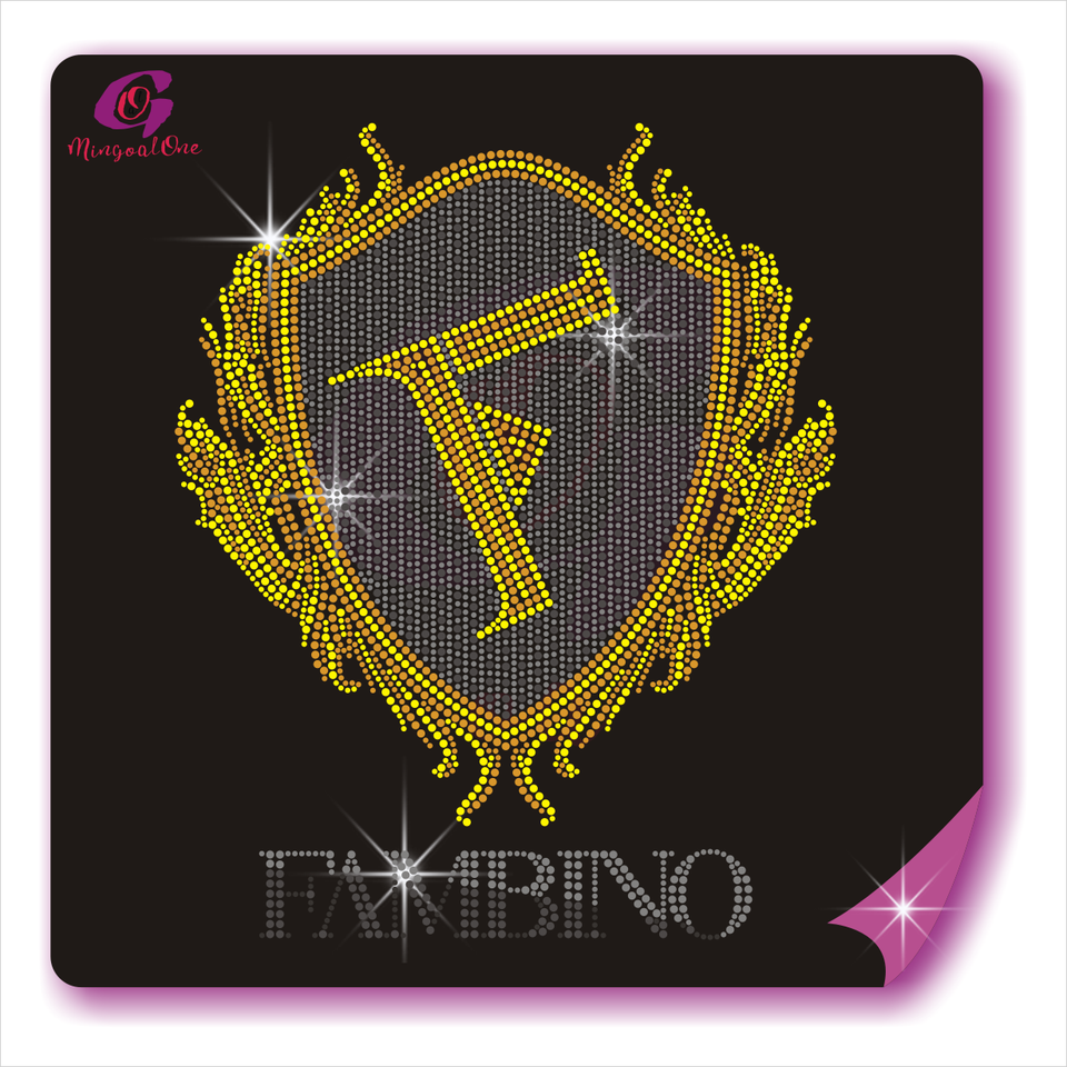 Vente en gros de taille frontale de transfert de strass Hotfix Colorful Shinny Rhinestone Transfer Designs Custom Rhinestone Motif pour chemise