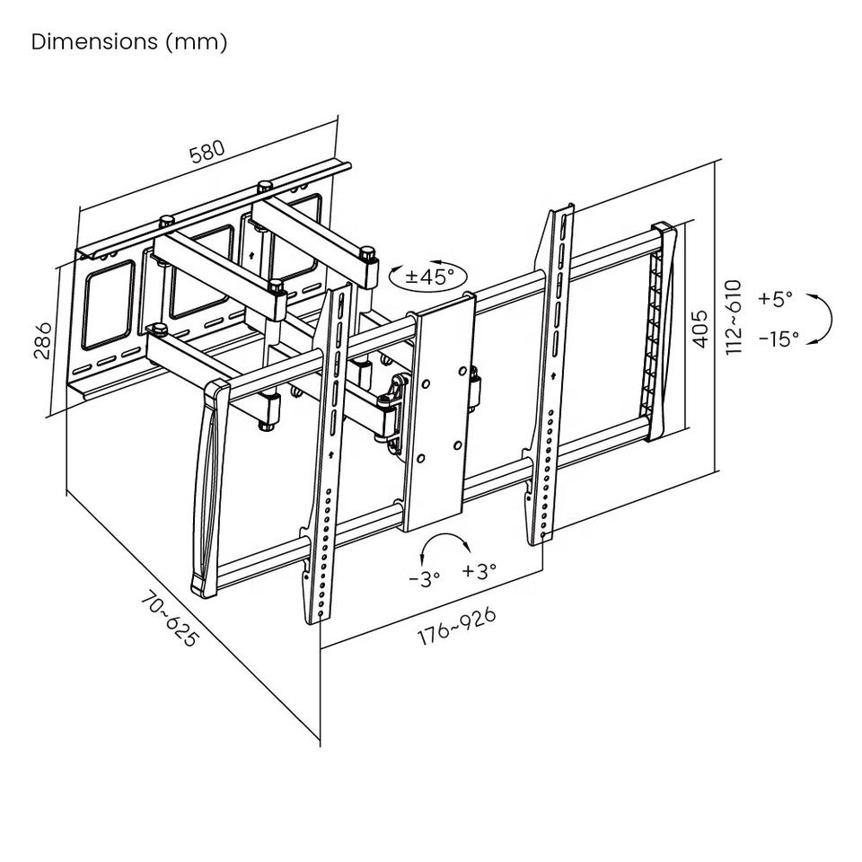 Support mural pour téléviseur intelligent LED à mouvement complet en gros, 100 pouces, pour écran de grande taille de 60 à 100 pouces