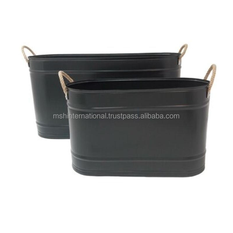 Vente en gros Seau nervuré de forme ovale polyvalent en métal galvanisé Seau en fer pour bière et vin au prix de gros