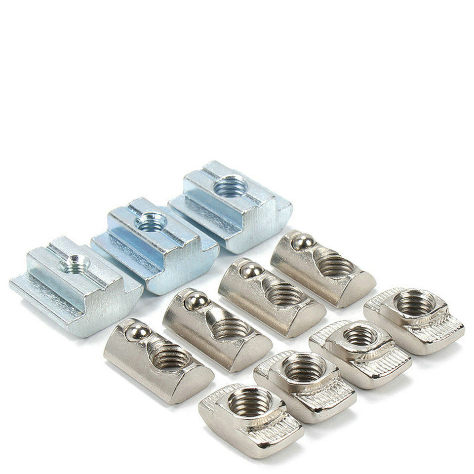 Écrou à bille à ressort en acier galvanisé entièrement fileté, écrou à bille demi-rond, écrou coulissant en T pour profilé en aluminium à rainure en T, classe 8