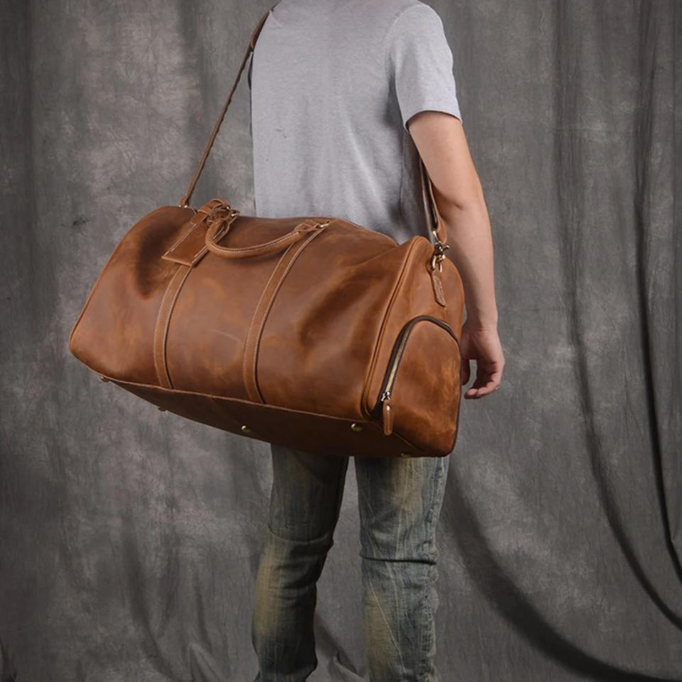 Wholesale Genuine Leather Travel Bags Men's Briefcase Men Women's Crazy Shoulder Bag Small Leather Duffle Bag