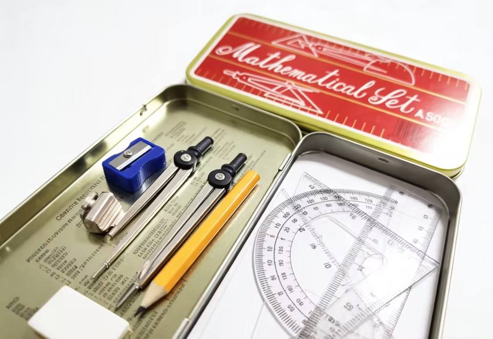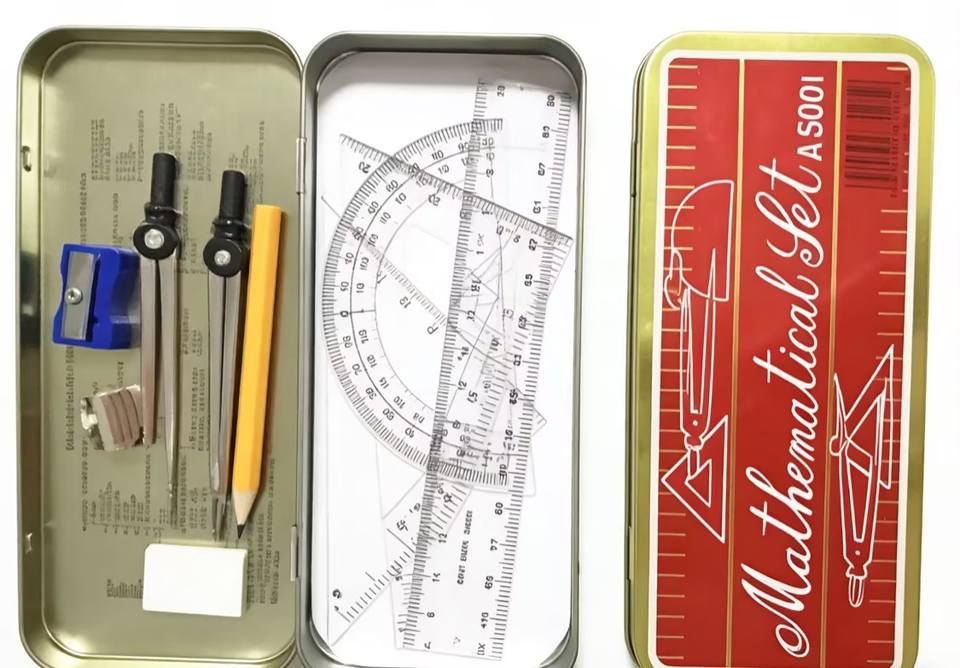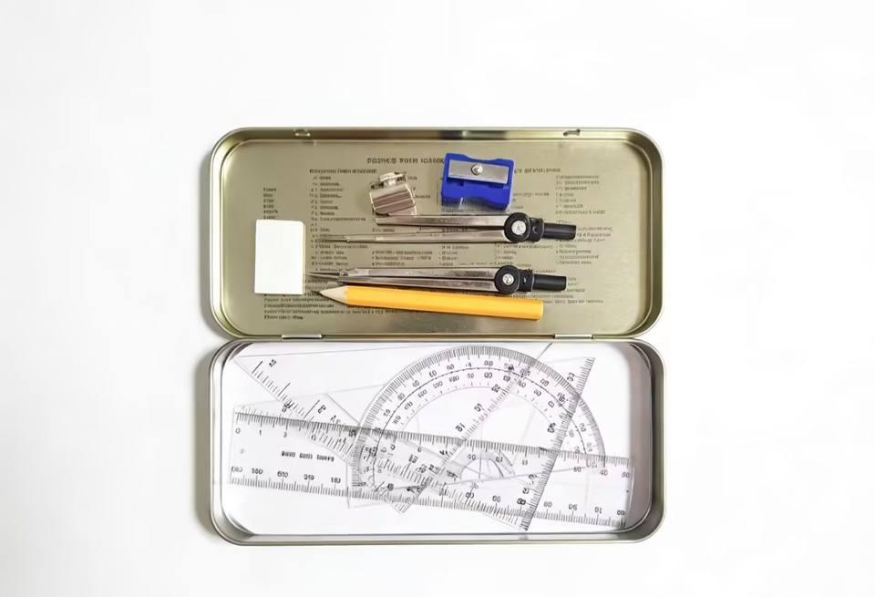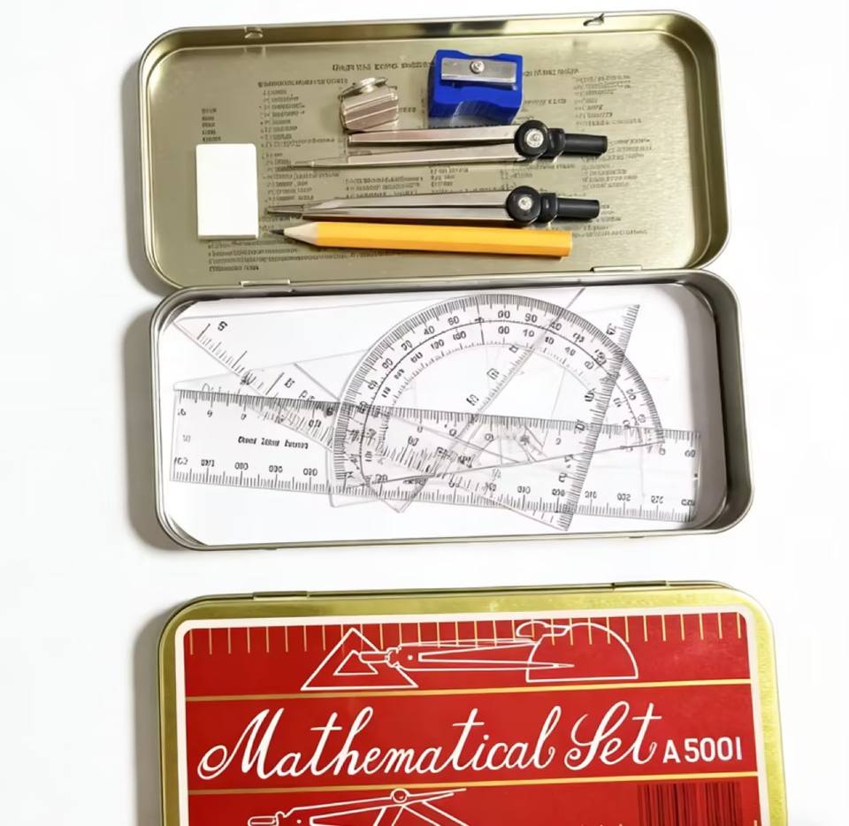 Outil de dessin mathématique 9 pièces - Boîte en métal - Ensemble de mathématiques