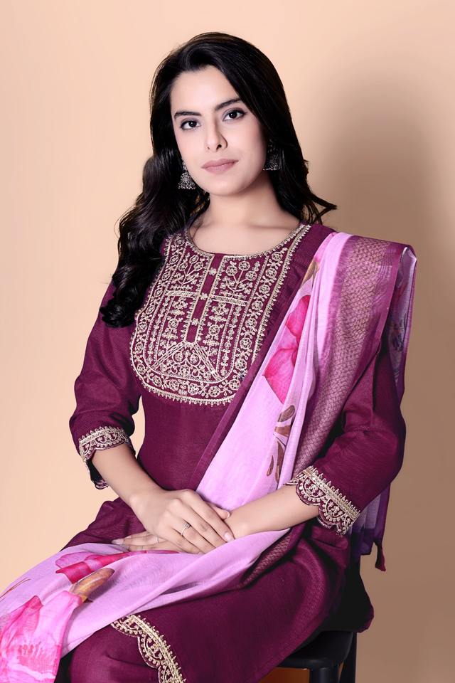 Ensemble Kurti en Soie Georgette Brodé en Gros pour Femmes, Mélange de Soie et de Coton, Vêtements Ethniques, Fournisseur, Achat en Gros, Vêtements de Mariage, Tailles S à XXL
