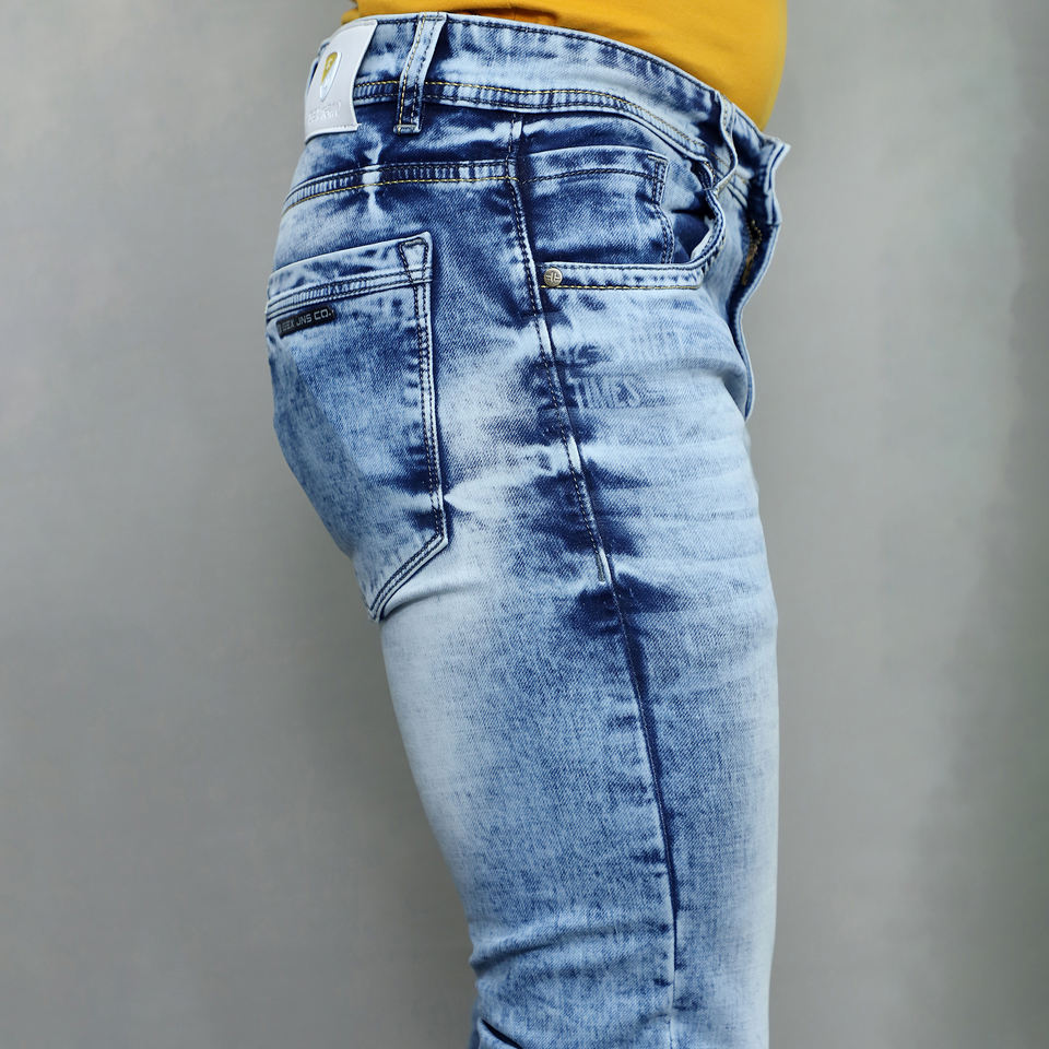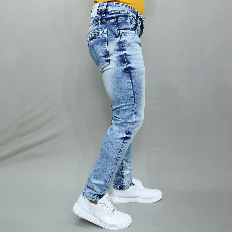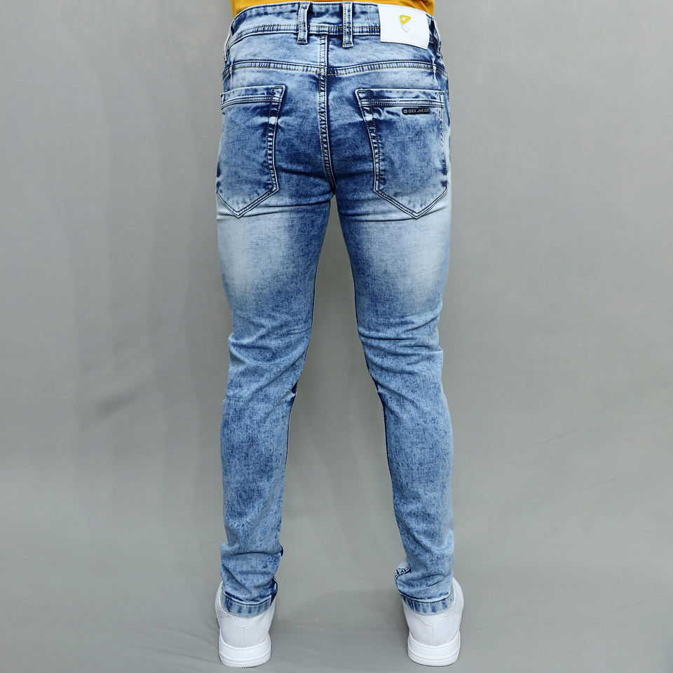 Jeans en denim de coton extensible bleu taille mi-haute pour hommes Gex en gros