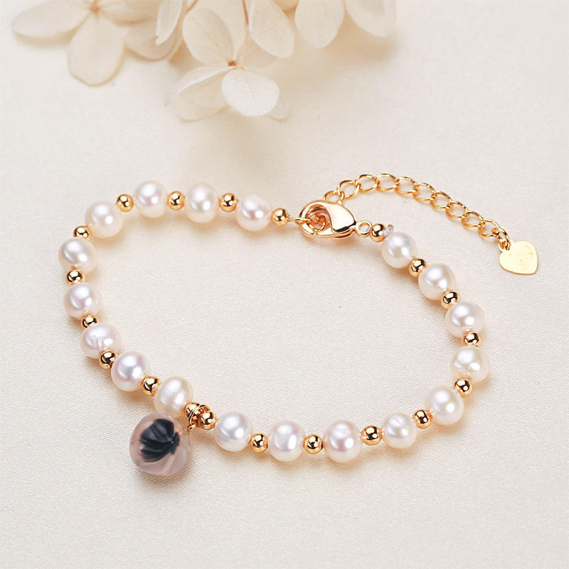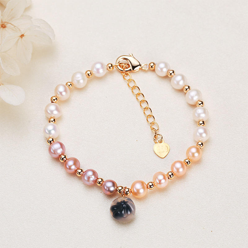 Wholesale Girl's Sugar Heart Agate Flow Sandbag Xiaolongbao Pendant Little Dripping Freshwater Pearl Bracelet Charming Jewelry