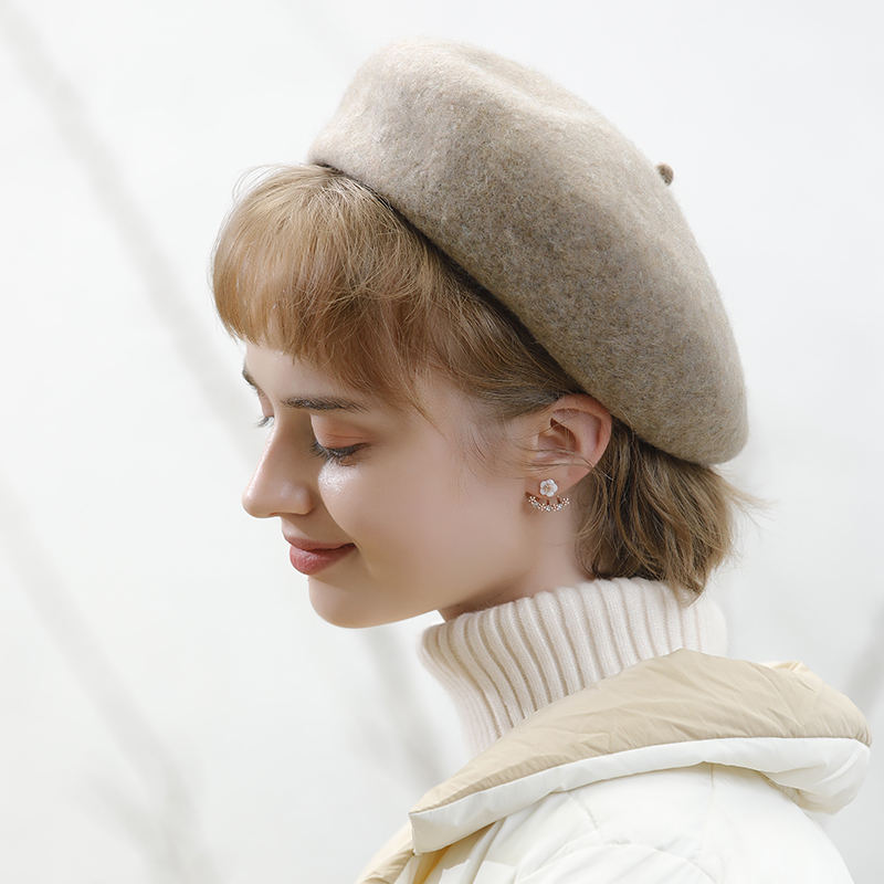 Bonnet béret en feutre de laine pour dames, couleur unie, tricot français pour filles, vente en gros
