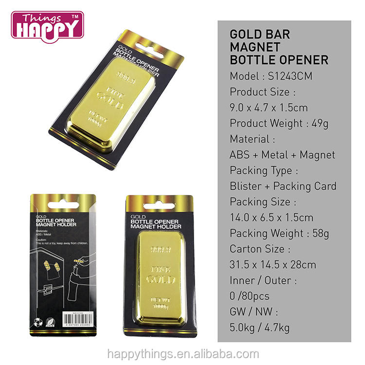 Nom du produit:Or Décor Or Bullion Bar Forme En Plastique Décapsuleur Aimant
