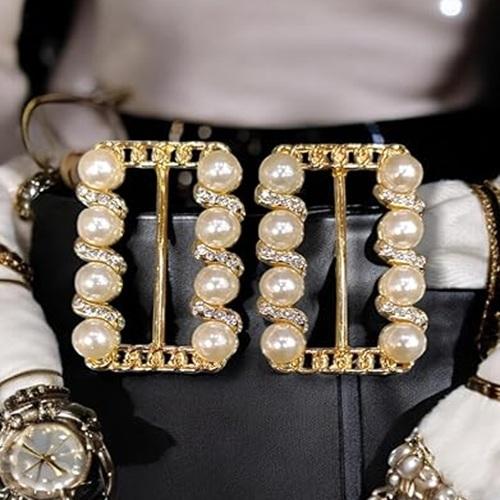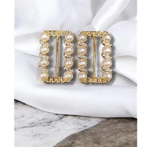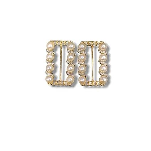 Wholesale Gold Pearl Crystal Shoe Buckle Set Rectangle Design, Decorative Shoe Accessories for Footwear OEM Bulk Supplier