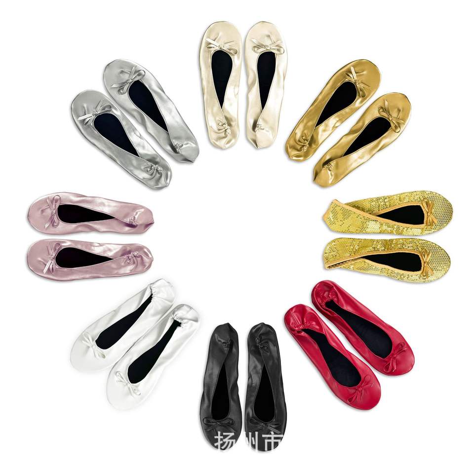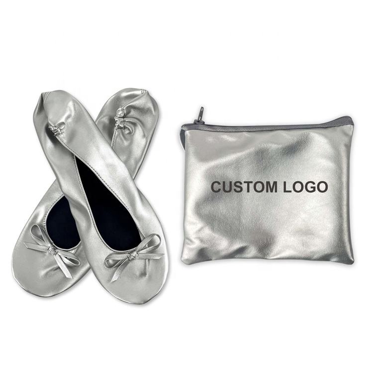 Wholesale Gold Pink Wedding Gift Ballerina Disposable Flat Foldable Ballet Shoes After Party Slipper Flats with Zipper Pouch
