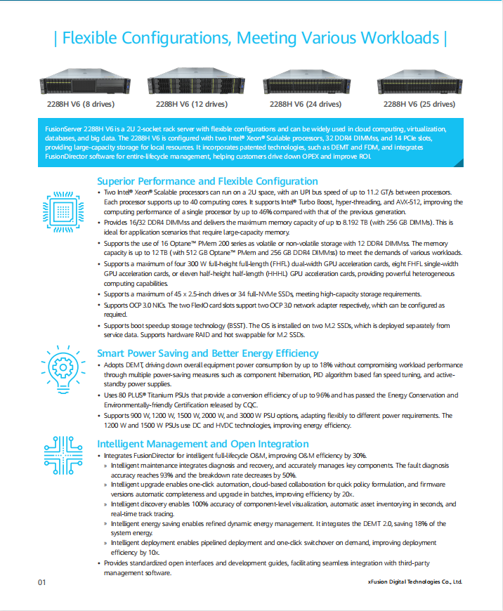 Vente en gros Bonne performance Tout nouveau serveur rack xfusion 2288HV6