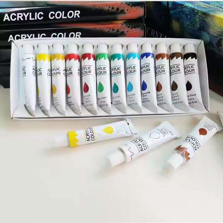 Peinture acrylique de qualité supérieure en gros, logo personnalisé, 12 ml, 12/24 couleurs, ensemble de peinture pour la peinture