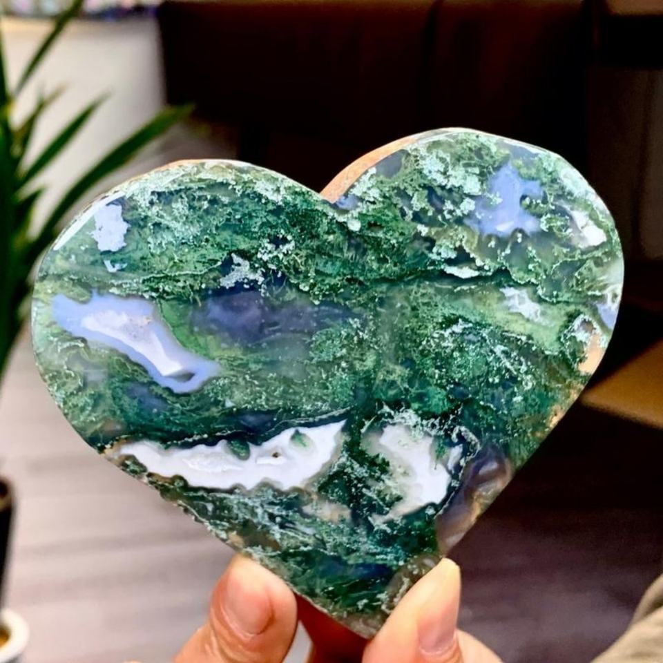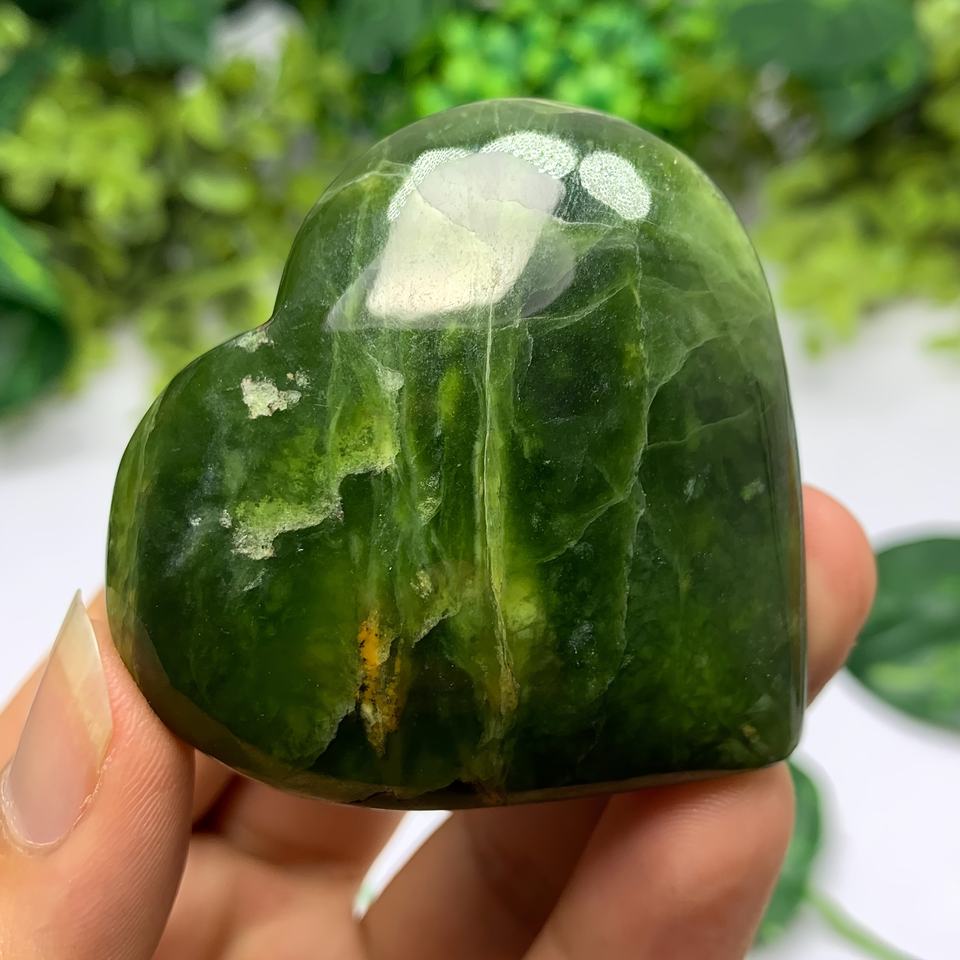Nom du produit:Pierre de Serpentine Verte et Cristal de Coeur en Agate Mousse