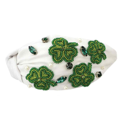Wholesale Green and White Clover Beaded Headbands for St Patrick's Day