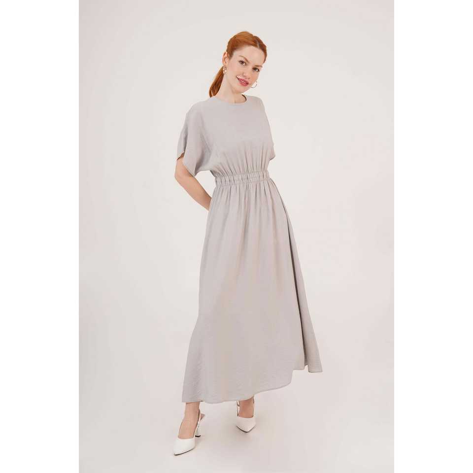 Wholesale Grey Batwing Sleeve Maxi Dress Elastic Waist Elegant Vintage Floral Pattern One Fits All for Spring Autumn Day Party